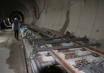عملیات روسازی و ریل گذاری در تونل به طول حدودا ۱۵۰۰ متر از فاز اول
