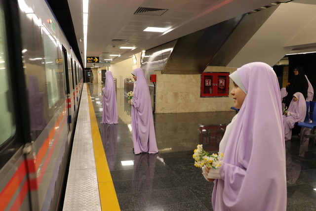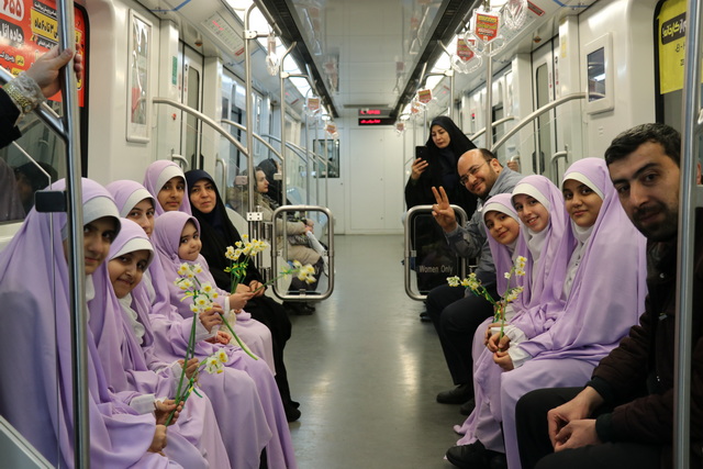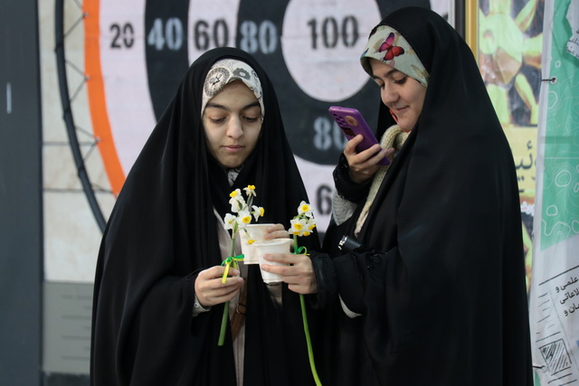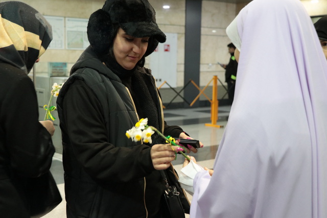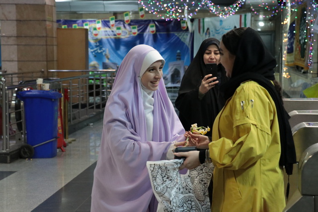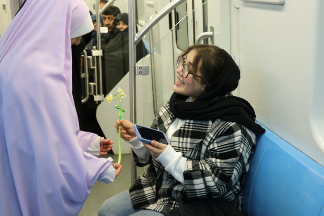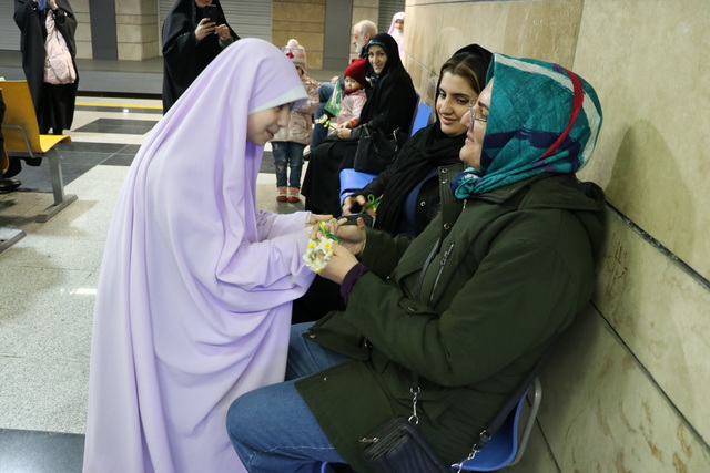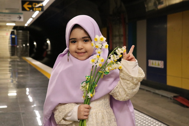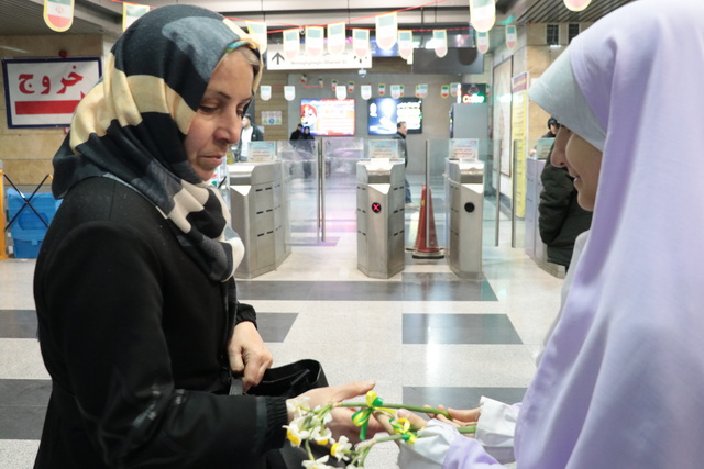 اهدای گل نرگس به مسافران مترو در روز نیمه شعبان توسط گروه سرود رهپویان یاس