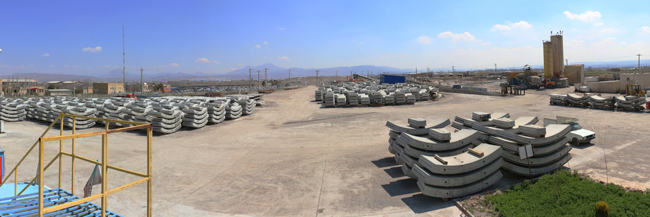 کارخانه تولید قطعات بتنی(precast yard ) در زمینی به مساحت 9000 متر مربع احداث شده است. سطح کل زیربنای بخشهای مختلف حدود 5200 متر مربع می باشد و قسمت دپو در حدود 20800 متر مربع وسعت دارد.